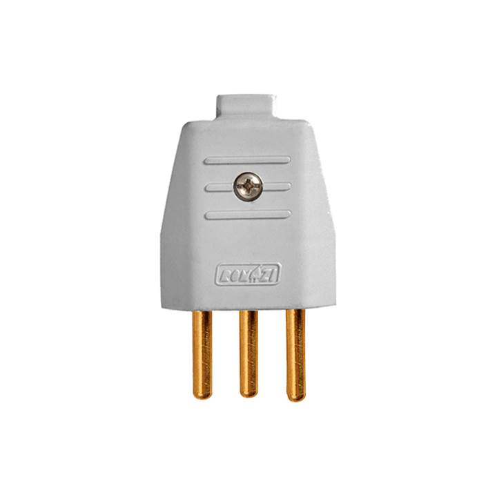 PLUGUE MACHO 2P+T 10A 180º CINZA ROMAZI